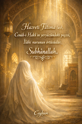 İlahi Nur’un örtüsü: Hz. Fatıma (as) Nisan 5, 2026Şubat 24, 2026 yazar Ceyhun Kırmızıtaş Hazreti Fatıma (as), Cenab-ı Hakk’ın yeryüzündeki peçesi, ilahi nurunun örtüsüdür. Ceyhun
